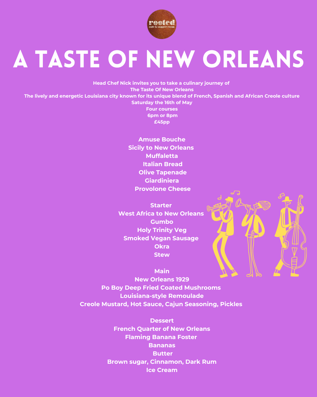 Here at Rooted, we bring our experimental seasonal dishes and local ingredients even further with our monthly supper club evenings. Join us on the last Saturday of every month for a one off menu inspired by our multicultural British heritage.